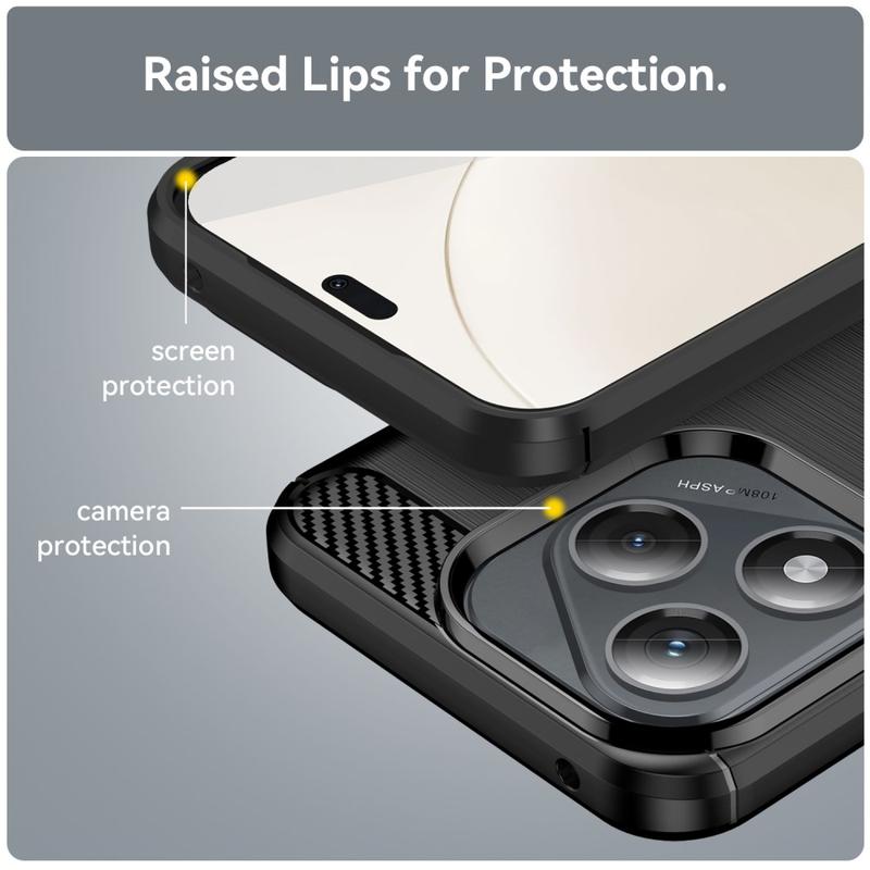 Giv din Honor 400 Lite, Honor X70i den stilfulde beskyttelse, den fortjener, med dette Carbon Fiber Texture Brushed Case. Det kombinerer en elegant børstet finish med et robust, beskyttende design og beskytter din enhed mod daglige stød og ridser, samtidig med at det giver et behageligt greb.
