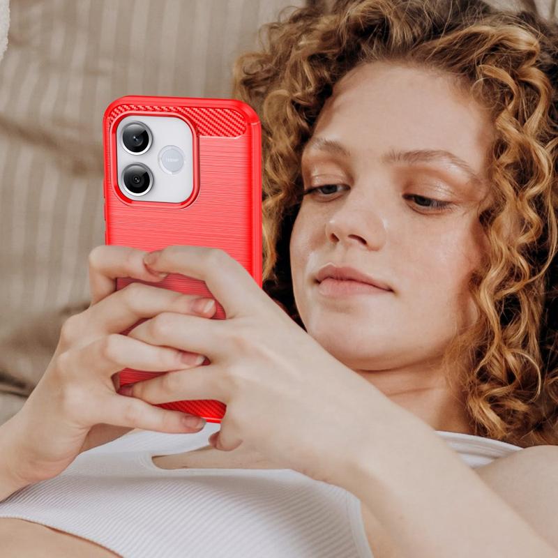Honor 600 Lite Børstet TPU Cover - Karbonfiber - rød