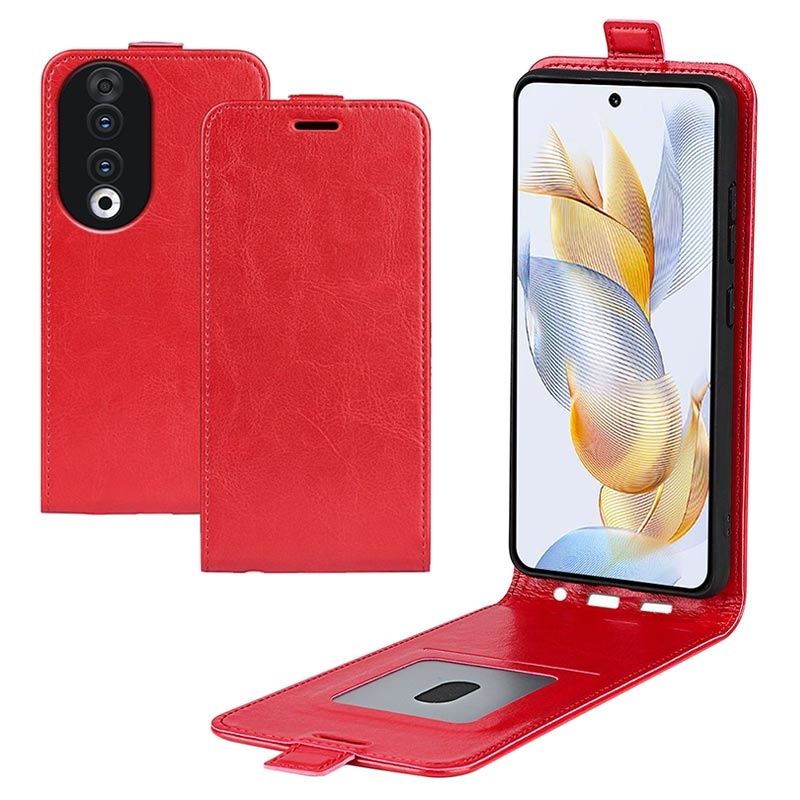 Honor 90 Vertikal Flip Taske med Kortholder - Rød