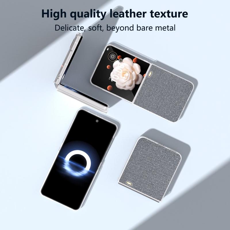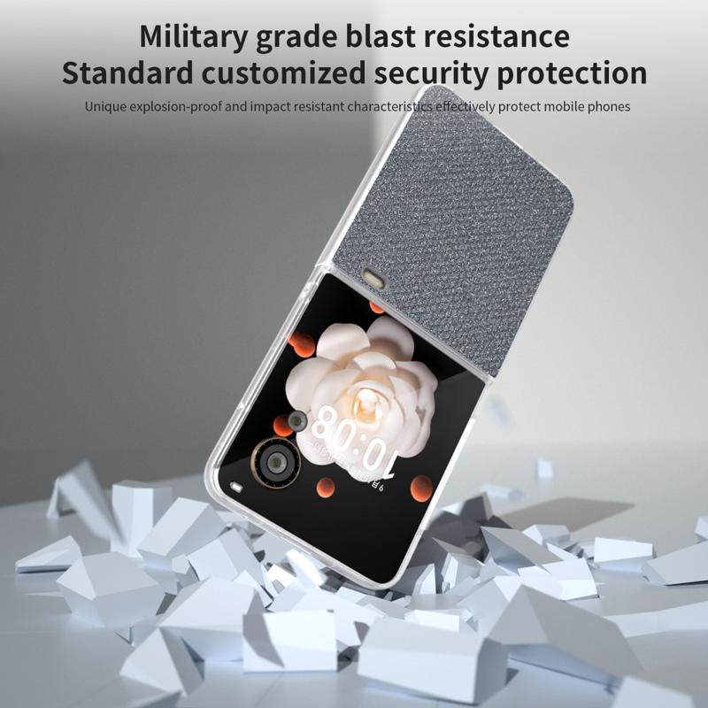 Beskyt din Honor Magic V Flip 5G med dette førsteklasses cover. Dette cover kombinerer luksuriøst polyuretan med robust pc-materiale og er designet til at give førsteklasses beskyttelse og et sofistikeret udseende. Det skridsikre greb sikrer, at din telefon forbliver sikkert i hånden, hvilket reducerer risikoen for utilsigtede fald, samtidig med at den bevarer et slankt, professionelt udseende.