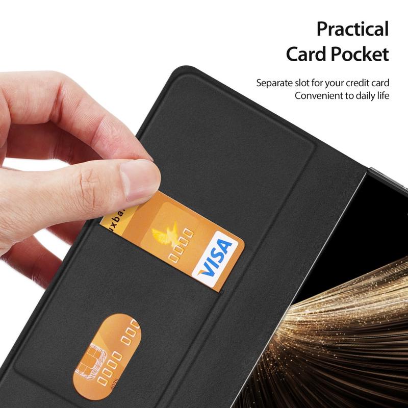 Levér beskyttelse på højeste niveau til din dyrebare Honor Magic V5, og giv den et slående og iøjnefaldende look med dette førsteklasses flip cover fra Dux Ducis. Coveret har hævede kanter rundt om kameraet for ekstra sikkerhed og en indvendig kortplads til dit ID-kort, bankkort eller et andet vigtigt kort.