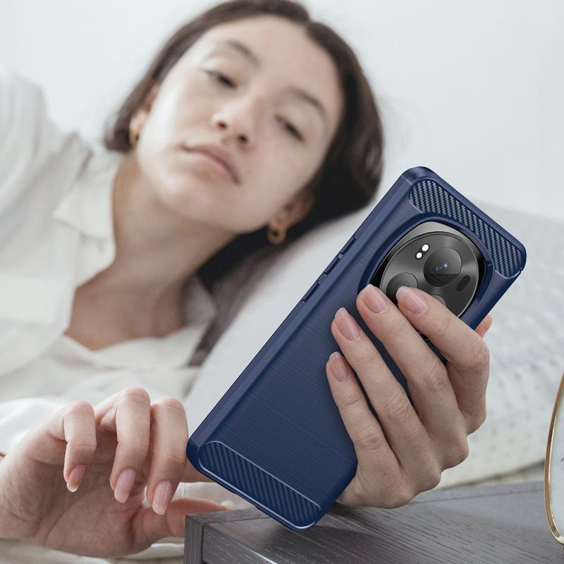 Honor Magic6 Pro Børstet TPU Cover - Karbonfiber - Blå