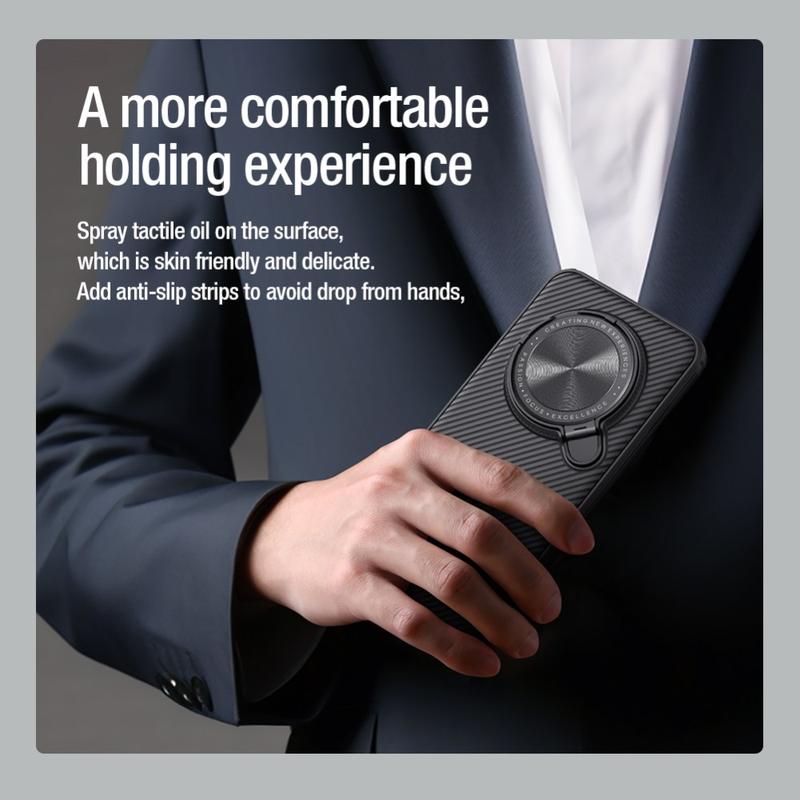 Beskyt din Honor Magic7 Pro med Nillkin Camshield Prop Series-etuiet. Dette etui er fremstillet af en holdbar hybrid af TPU og PC og giver overlegen beskyttelse mod daglige skader. Den klassiske twill-struktur giver et behageligt, skridsikkert greb, mens den indbyggede MagSafe-kompatibilitet sikrer problemfri trådløs opladning. En kickstand med metalramme til linsen giver ekstra beskyttelse til dit kamera og gør det nemt at se på det håndfrit. Skridsikre stænger og hævede læber beskytter din Honor Magic7 Pro, samtidig med at der er nem adgang til alle porte og funktioner.