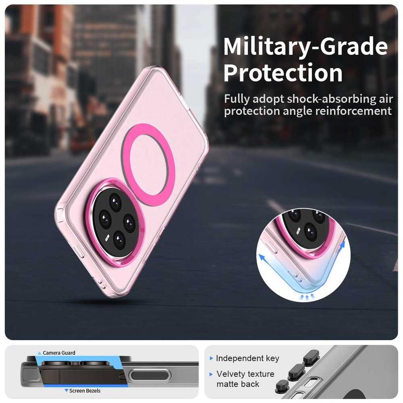 UltraGuard Matte MagSafe Case giver en perfekt balance mellem beskyttelse og slankt design til din Honor Magic7. Dette slanke letvægtsetui er fremstillet af en holdbar blanding af TPU- og PC-materialer. Den matte, gennemskinnelige finish giver din Honor Magic7 et stilfuldt udseende, samtidig med at der er nem adgang til MagSafe-opladning. Med overlegen beskyttelse mod fald og ridser er det et fremragende valg til daglig brug.