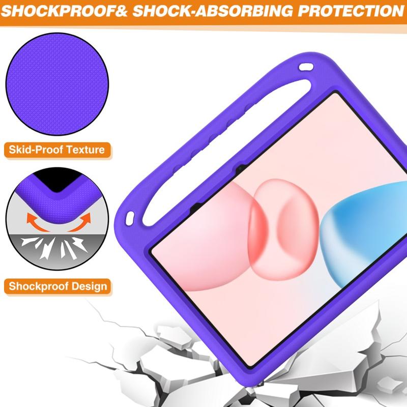 Det er lavet af slagfast, miljøvenligt og ikke-giftigt EVA-materiale, som forstærker hjørnerne, samtidig med at den hævede ramme omkring skærmen beskytter mod ridser og slag. Bagsiden af coveret har en kickstand, som muliggør komfortable og håndfrie oplevelser, alt imens bærehåndtaget gør coveret endnu mere praktisk og spændende for børnene.
