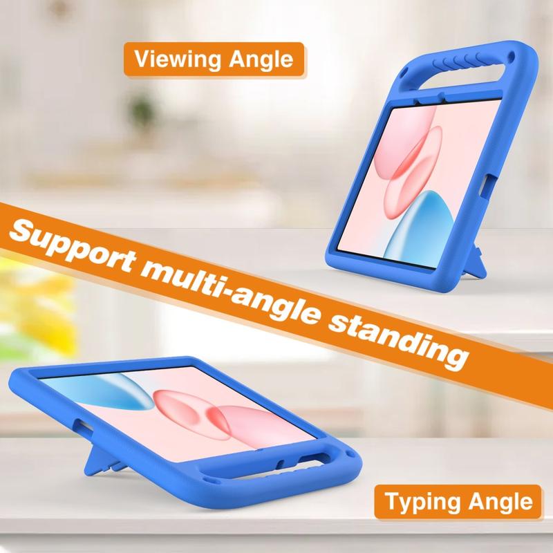 Det er lavet af slagfast, miljøvenligt og ikke-giftigt EVA-materiale, som forstærker hjørnerne, samtidig med at den hævede ramme omkring skærmen beskytter mod ridser og slag. Bagsiden af coveret har en kickstand, som muliggør komfortable og håndfrie oplevelser, alt imens bærehåndtaget gør coveret endnu mere praktisk og spændende for børnene.