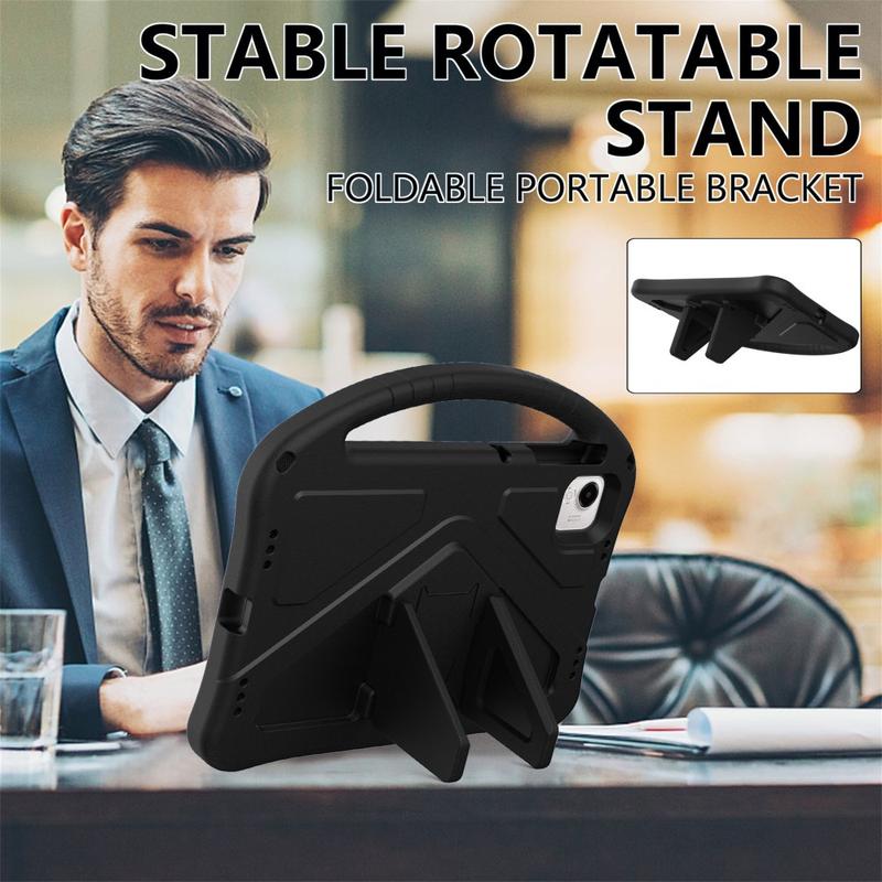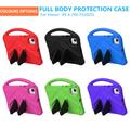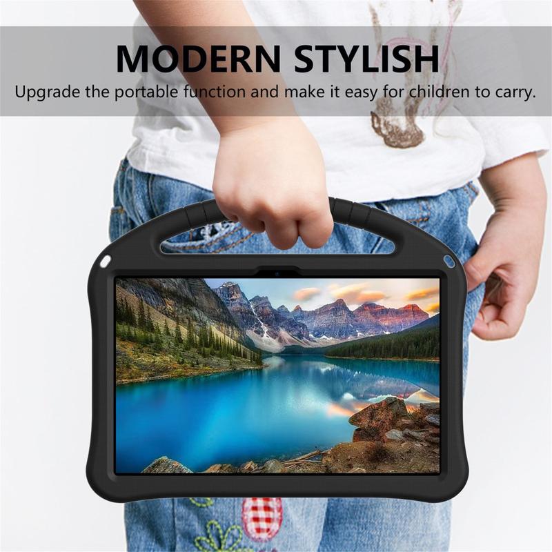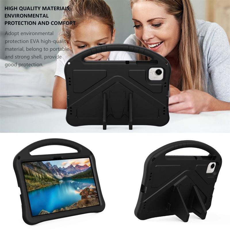 Det er lavet af slagfast, miljøvenligt og ikke-giftigt EVA-materiale, som forstærker hjørnerne, samtidig med at den hævede ramme omkring skærmen beskytter mod ridser og slag. Bagsiden af coveret har en kickstand, som muliggør komfortable og håndfrie oplevelser, alt imens bærehåndtaget gør coveret endnu mere praktisk og spændende for børnene.