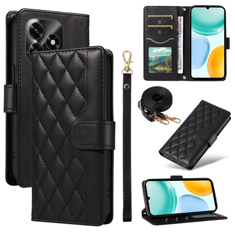 Luksus quiltet pungetui med skulder- og håndledsrem til Honor X5c Plus - beskyttende cover med rombe-mønster