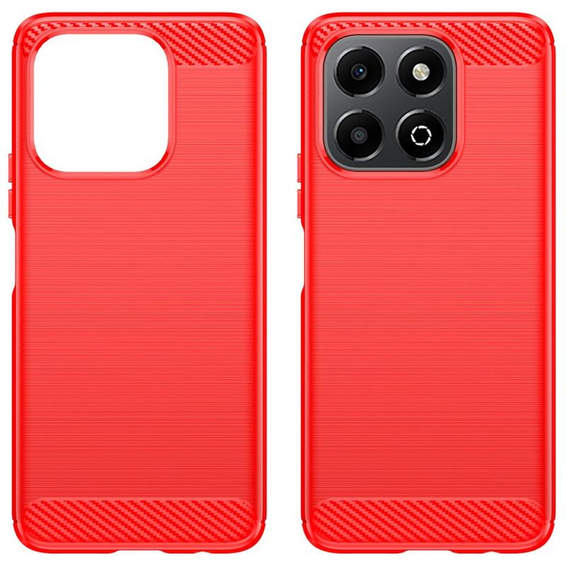 Honor X6b Børstet TPU Cover - Karbonfiber - Rød