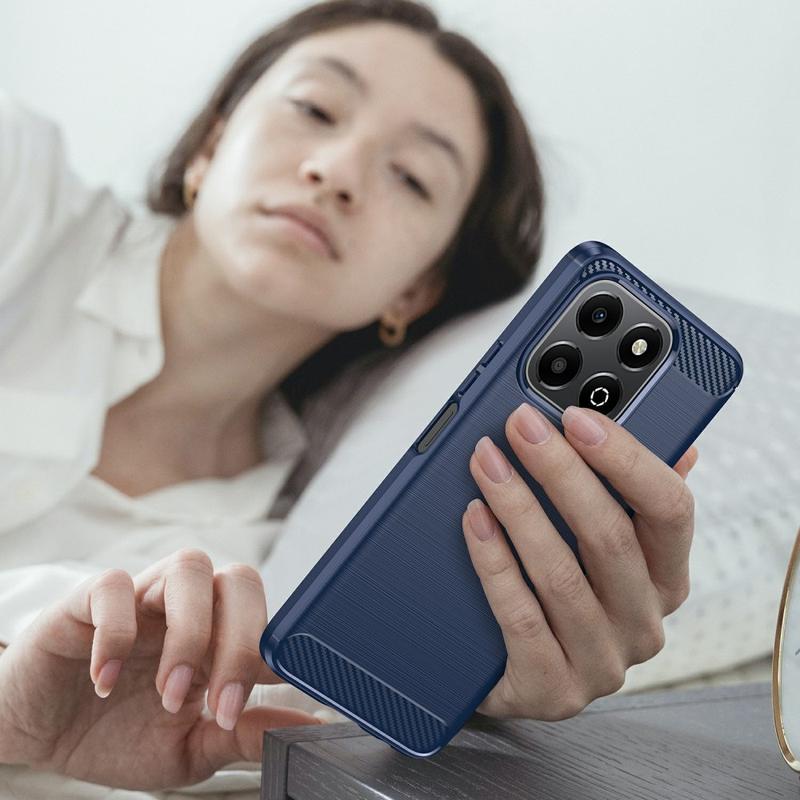 Honor X6b Børstet TPU Cover - Karbonfiber - Blå