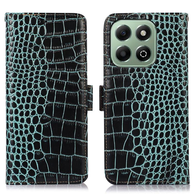Honor X6b Crocodile Series Læderpung med RFID - Grøn