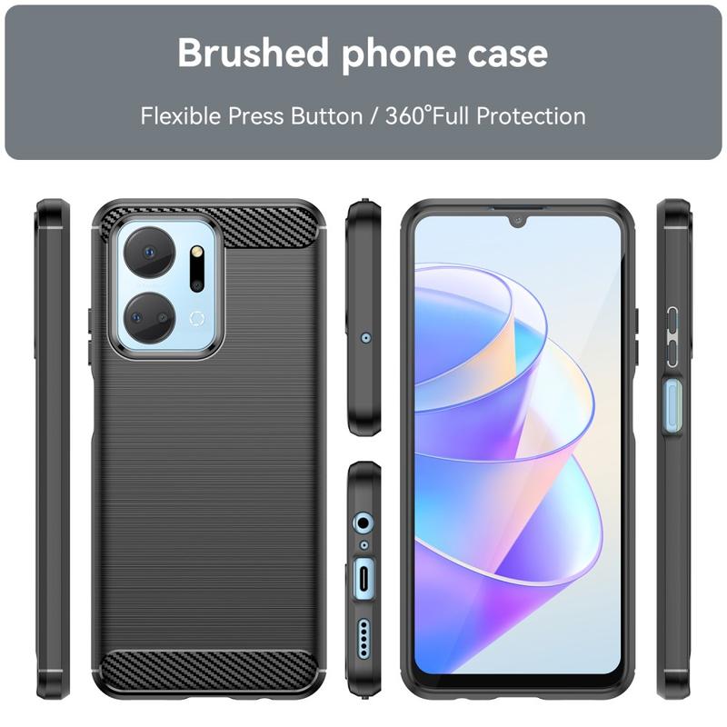 Honor X7a Børstet TPU Cover - Karbonfiber - Sort