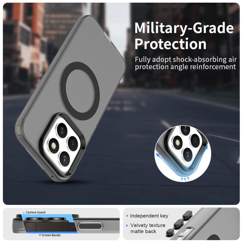UltraGuard Matte MagSafe Case giver en perfekt balance mellem beskyttelse og slankt design til din Honor X8c. Dette slanke letvægtsetui er fremstillet af en holdbar blanding af TPU- og PC-materialer. Den matte, gennemskinnelige finish giver din Honor X8c et stilfuldt look, samtidig med at der er nem adgang til MagSafe-opladning. Med overlegen beskyttelse mod fald og ridser er det et fremragende valg til daglig brug.
