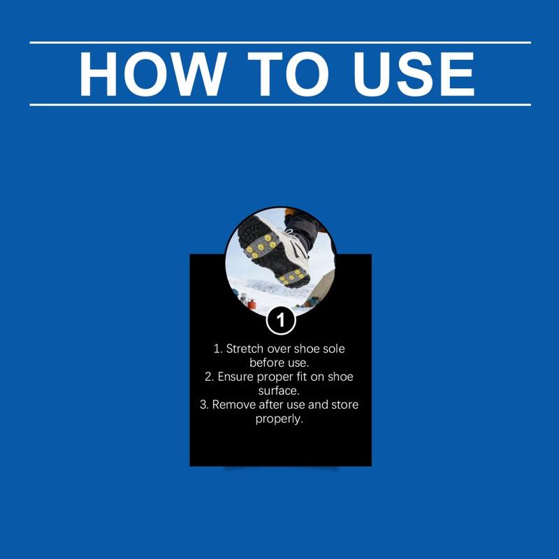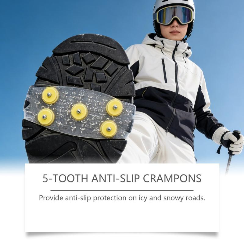 Gå mere sikkert på isglatte stier og snedækkede gader med HOZONEX 5-tands isbrodder. Hver brod er designet til at forbedre trækkraften på glatte overflader og har 5 strategisk placerede metalspidser, der øger kontakten med underlaget og hjælper med at reducere glidning, når forholdene bliver glatte. Den fleksible TPE-base strækker sig over mange skotyper og skaber en sikker pasform, der forbliver stabil under gang uden at glide rundt.