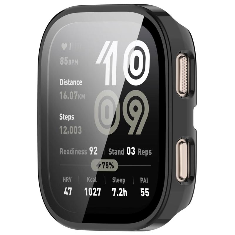 2-i-1 design, den perfekte løsning til at beskytte din dyrebare Huami Amazfit Bip 6 mod dagligdagens skader. En skærmbeskytter af hærdet glas holder uret fri for ridser, men den påvirker ikke skærmens følsomhed eller lysstyrke. Med en ramme af plastik gør det din Huami Amazfit Bip 6 mere pæn.