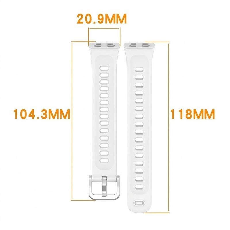 Få dit Huawei Band 11, Band 11 Pro til at se spritnyt ud med denne bløde silikone rem. Remmen har adskillige huller, og kan justeres i henhold til håndleddets omkreds. Det er lavet af miljøvenligt og slidstærkt silikonemateriale. Det bløde, fleksible, åndbare og letvægtige rem-design, gør det komfortabelt at bære uden at forårsage hudirritationer.