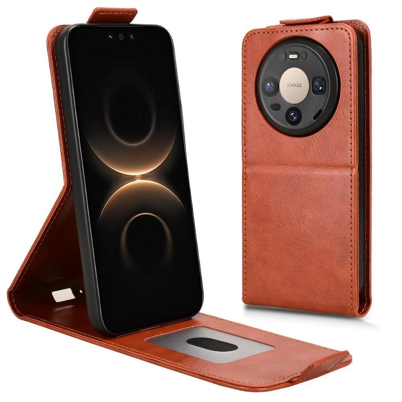 Huawei Mate 80/80 Pro lodret flip-etui med stativ - Brun
