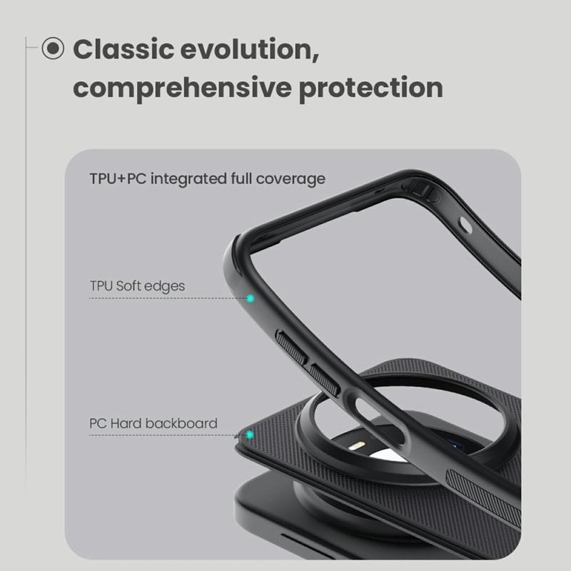 Nillkin Frosted Shield Pro Magnetic hybrid cover giver en behagelig berøringsfølelse og stærk beskyttelse mod dagligt slid. Den holder din Huawei Mate 80 Pro Max godt beskyttet takket være dens kombination af miljøvenlig PC og fleksibel TPU. Nillkin Frosted Shield Pro Magnetic hybrid coveret indeholder også en indbygget magnetisk ring, der er kompatibel med trådløs opladning, hvilket betyder, at du kan oplade din Huawei Mate 80 Pro Max fra nu af med etuiet på.