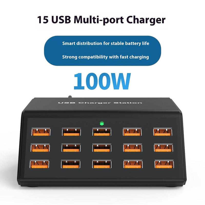 - Massiv opladningskapacitet med 15 porte - Oplad samtidig op til 15 enheder med en samlet udgangseffekt på 100W, hvilket sikrer, at alle enheder får en effektiv og stabil opladning.