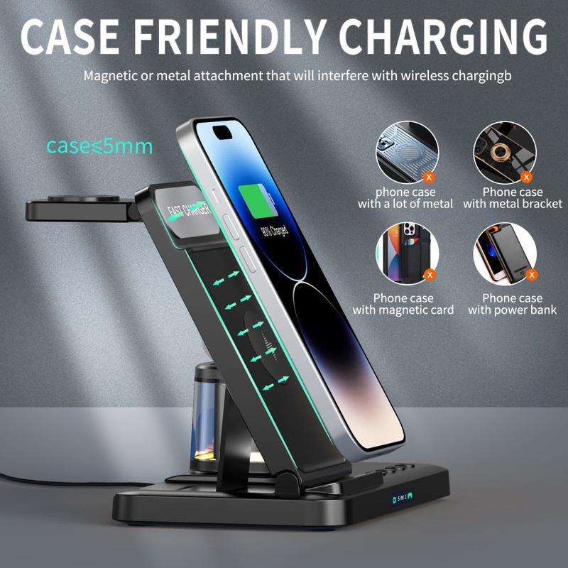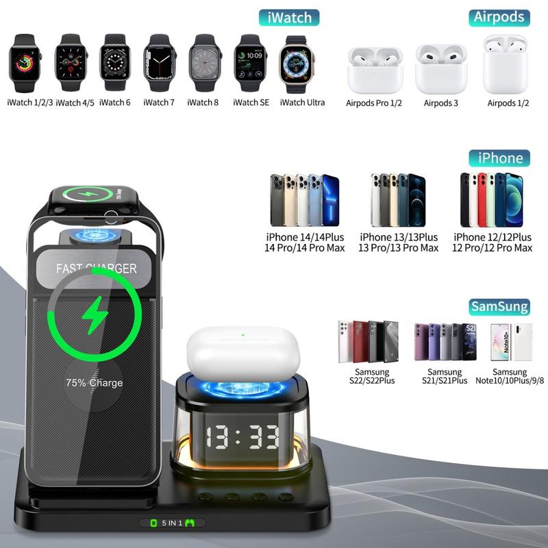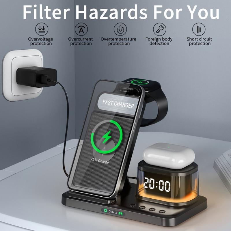 Opgrader til HYY-H33 5-i-1 trådløs opladningsstation - din alt-i-en-opladnings- og natlampe-løsning til et smartere og mere overskueligt rum!