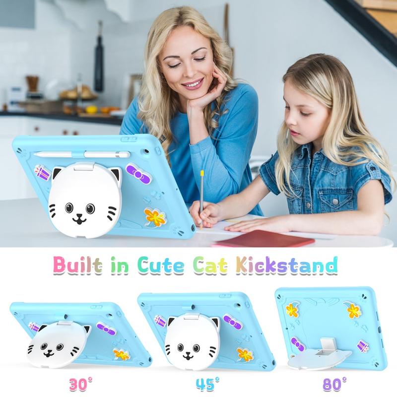 iPad 10.2 2019/2020/2021 11 Cat Case kombinerer sødt design, smart beskyttelse og praktiske funktioner i ét. Med sit sikre greb, justerbare stativ og fulde dækning holder det din enhed sikker og stilfuld, uanset hvor du går.