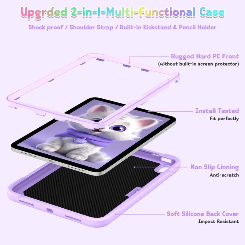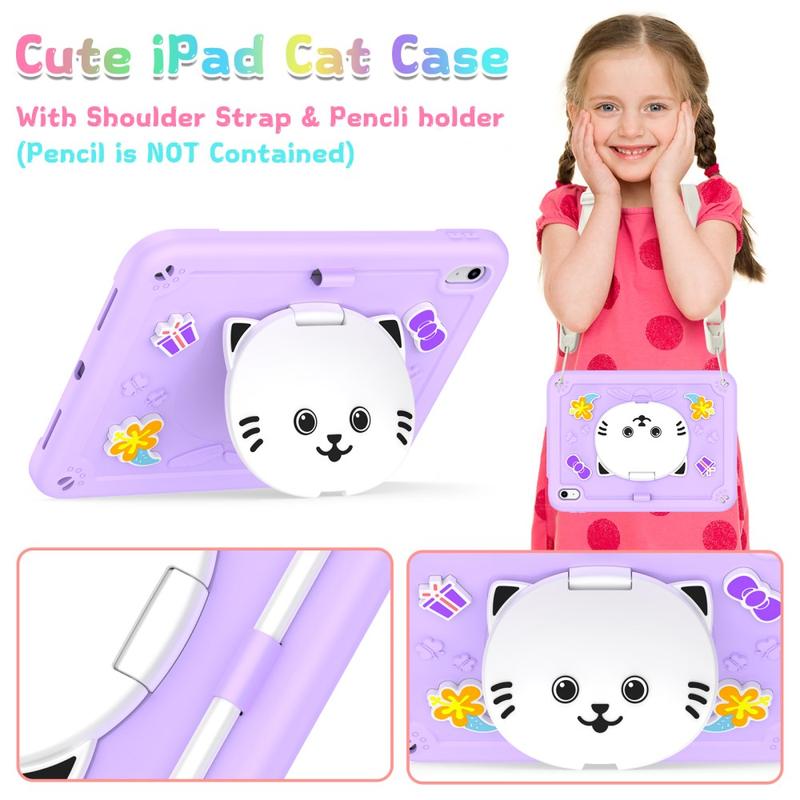 Sødt kattehybrid-etui med kickstand, skulderrem og stylusholder til iPad (2022), iPad (2025)