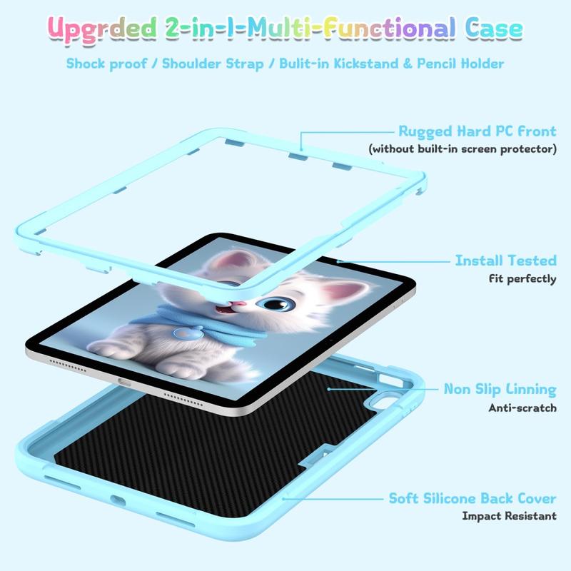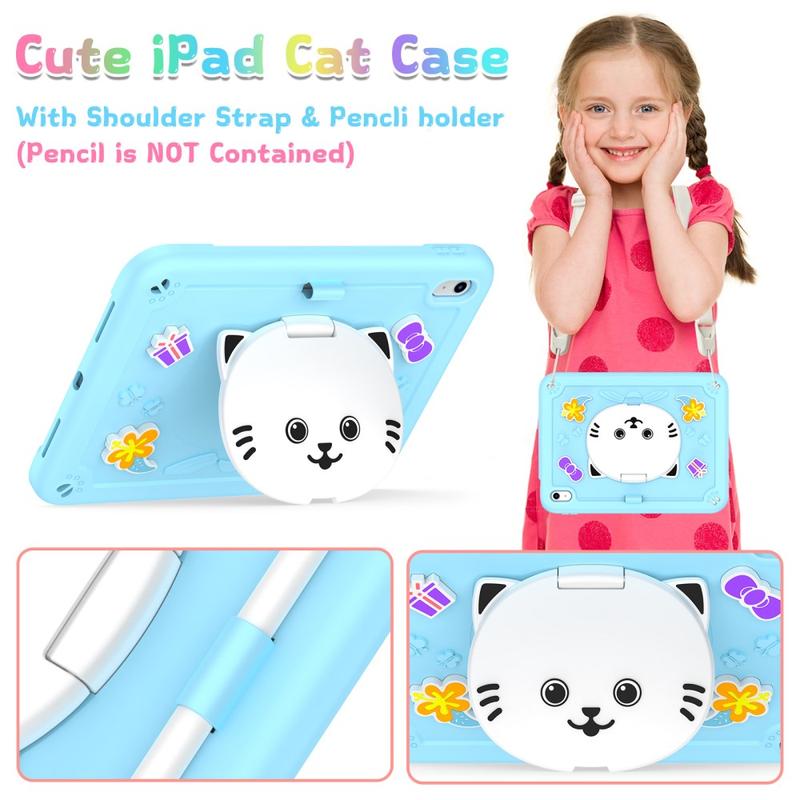 Sødt kattehybrid-etui med kickstand, skulderrem og stylusholder til iPad (2022), iPad (2025)
