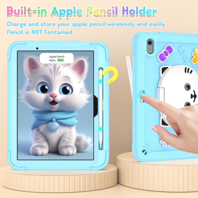 Sødt kattehybrid-etui med kickstand, skulderrem og stylusholder til iPad Air 11 (2024), iPad Air 11 (2025)