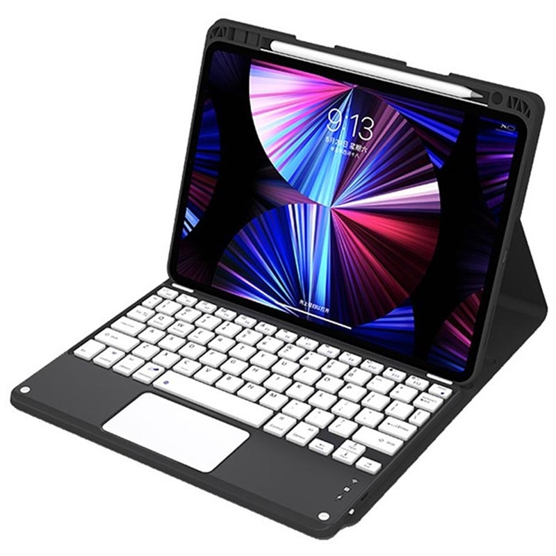 iPad Air 13 2026/2025/2024, iPad Pro 12.9 2022/2021/2020/2018 Bluetooth-tastaturetui med baggrundsbelysning, touchpad og stativ - US-tastaturlayout