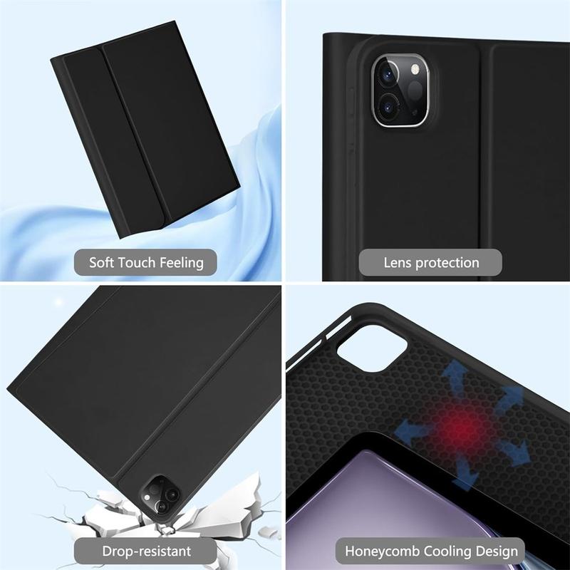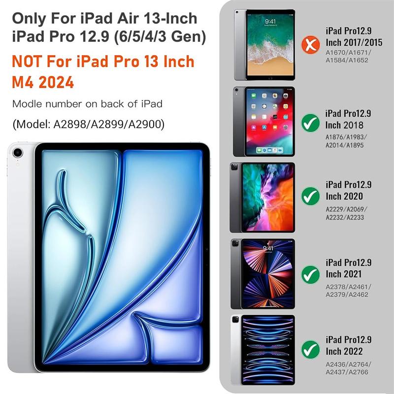 Gør din iPad Air 13 2026/2025/2024, iPad Pro 12.9 2022/2021/2020/2018 endnu bedre med et Bluetooth-tastaturetui, et multifunktionelt 2-i-1-tilbehør, der kombinerer beskyttelse, produktivitet og stil. Dette elegante etui er fremstillet af førsteklasses polyrethan og giver fuld beskyttelse mod ridser, stød og fingeraftryk, samtidig med at det bevarer et professionelt udseende. Bluetooth-tastaturet forbindes trådløst, så du kan skrive jævnt og hurtigt, mens den integrerede touchpad understøtter multigestusstyring, så du kan navigere ubesværet. Tastaturet er baggrundsbelyst, så du kan skrive komfortabelt selv i omgivelser med svagt lys. Den indbyggede justerbare stander giver en ergonomisk synsvinkel, som gør den perfekt til at skrive, streame eller læse. Dette tastaturetui er designet til forretningsbrug, rejser eller hverdagsbrug og forvandler din tablet til en bærbar arbejdsstation.