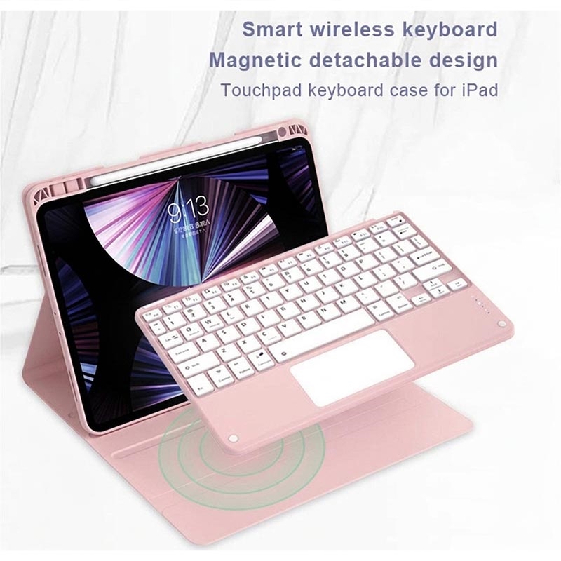 Gør din iPad Air 13 2026/2025/2024, iPad Pro 12.9 2022/2021/2020/2018 endnu bedre med et Bluetooth-tastaturetui, et multifunktionelt 2-i-1-tilbehør, der kombinerer beskyttelse, produktivitet og stil. Dette elegante etui er fremstillet af førsteklasses polyrethan og giver fuld beskyttelse mod ridser, stød og fingeraftryk, samtidig med at det bevarer et professionelt udseende. Bluetooth-tastaturet forbindes trådløst, så du kan skrive jævnt og hurtigt, mens den integrerede touchpad understøtter multigestusstyring, så du kan navigere ubesværet. Tastaturet er baggrundsbelyst, så du kan skrive komfortabelt selv i omgivelser med svagt lys. Den indbyggede justerbare stander giver en ergonomisk synsvinkel, som gør den perfekt til at skrive, streame eller læse. Dette tastaturetui er designet til forretningsbrug, rejser eller hverdagsbrug og forvandler din tablet til en bærbar arbejdsstation.