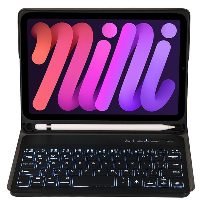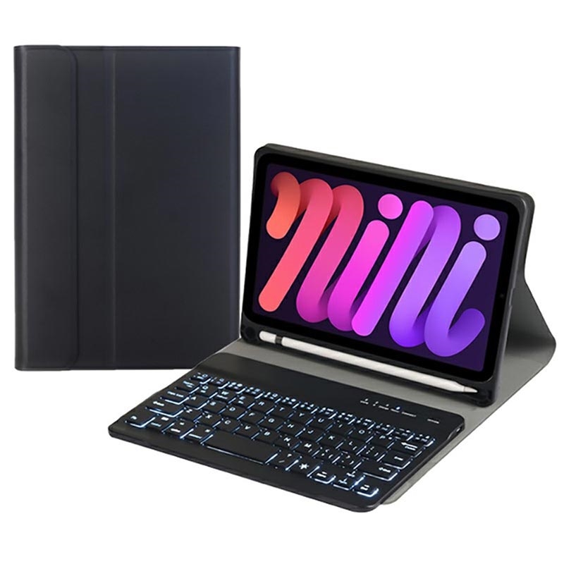 iPad Mini (2021), iPad Mini (2024) Bluetooth-tastaturetui med baggrundsbelysning, touchpad og stativ - US-tastaturlayout