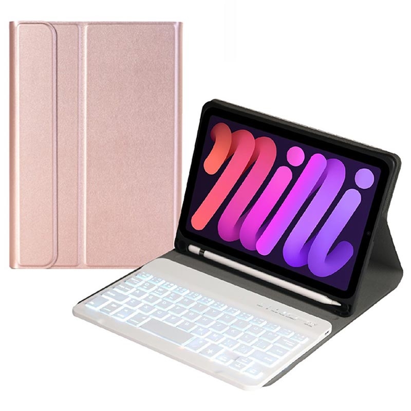iPad Mini (2021), iPad Mini (2024) Bluetooth-tastaturetui med baggrundsbelysning, touchpad og stativ - US-tastaturlayout