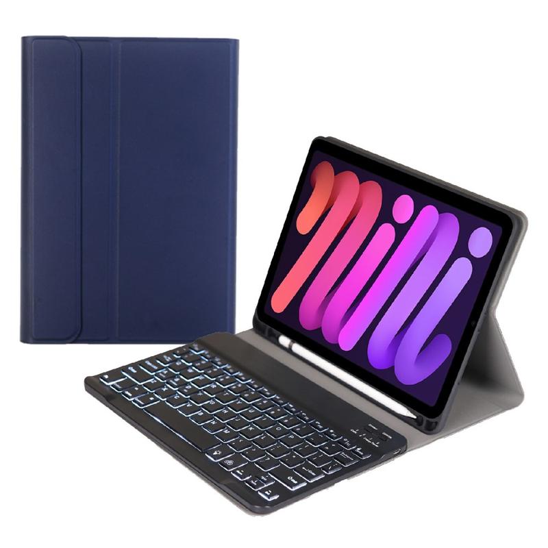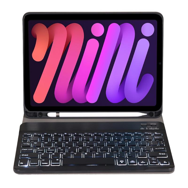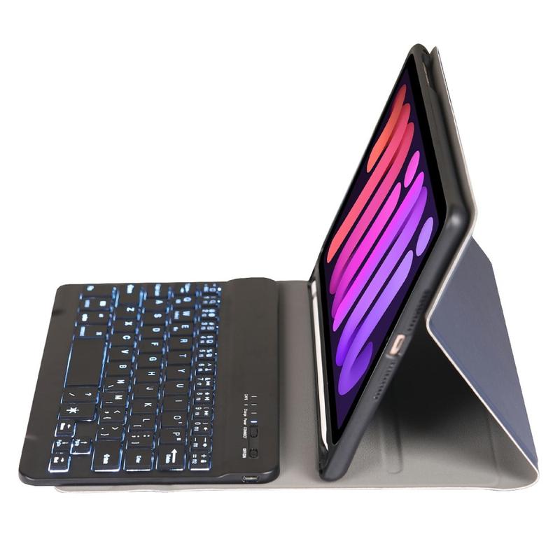 Gør din iPad Mini (2021), iPad Mini (2024) endnu bedre med et Bluetooth-tastaturetui, et multifunktionelt 2-i-1-tilbehør, der kombinerer beskyttelse, produktivitet og stil. Dette elegante etui er fremstillet af førsteklasses polyrethan og giver fuld beskyttelse mod ridser, stød og fingeraftryk, samtidig med at det bevarer et professionelt udseende. Bluetooth-tastaturet forbindes trådløst, så du kan skrive jævnt og hurtigt, mens den integrerede touchpad understøtter multigestusstyring, så du kan navigere ubesværet. Tastaturet er baggrundsbelyst, så du kan skrive komfortabelt selv i omgivelser med svagt lys. Den indbyggede justerbare stander giver en ergonomisk synsvinkel, som gør den perfekt til at skrive, streame eller læse. Dette tastaturetui er designet til forretningsbrug, rejser eller hverdagsbrug og forvandler din tablet til en bærbar arbejdsstation.