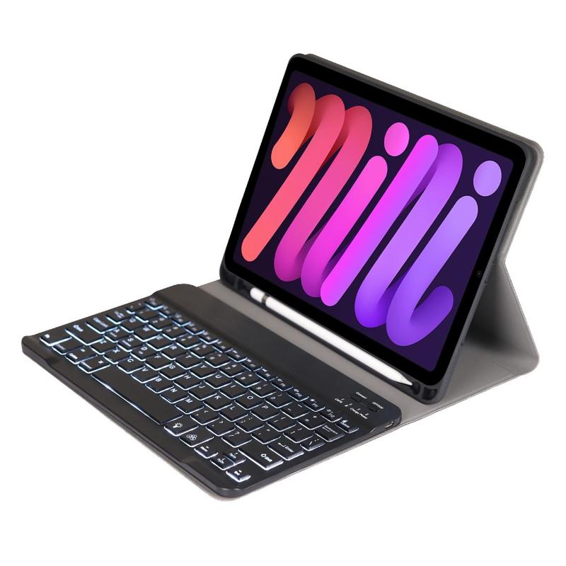 iPad Mini (2021), iPad Mini (2024) Bluetooth-tastaturetui med baggrundsbelysning, touchpad og stativ - US-tastaturlayout