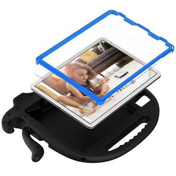Det er lavet af slagfast, miljøvenligt og ikke-giftigt EVA-materiale, som forstærker hjørnerne, samtidig med at den hævede ramme omkring skærmen beskytter mod ridser og slag. Bagsiden af coveret har en kickstand, som muliggør komfortable og håndfrie oplevelser, alt imens bærehåndtaget gør coveret endnu mere praktisk og spændende for børnene.