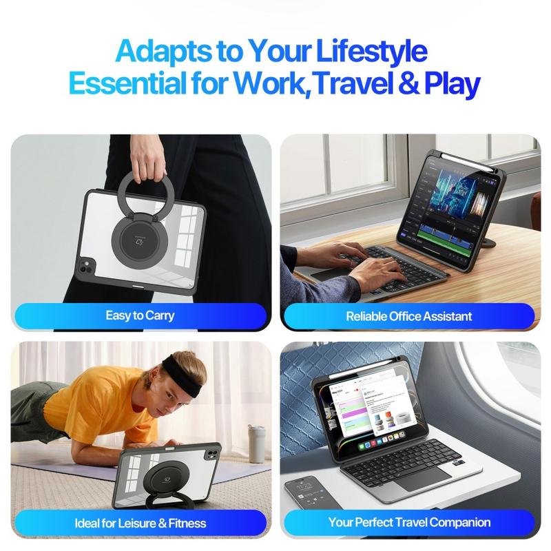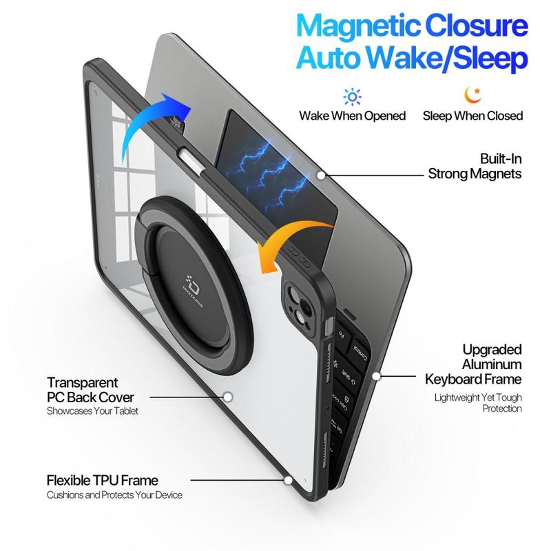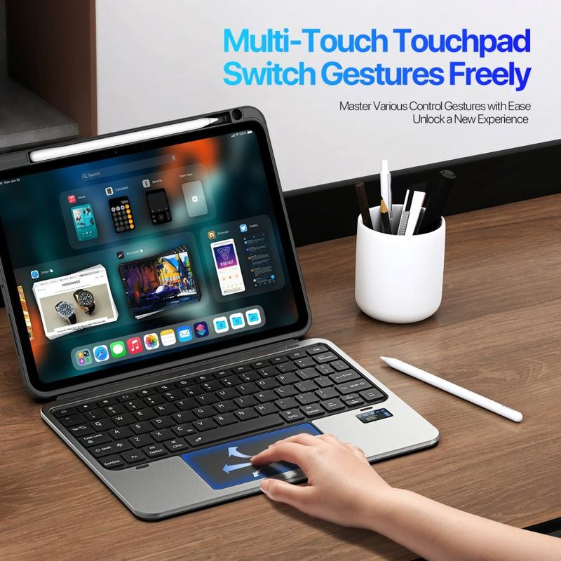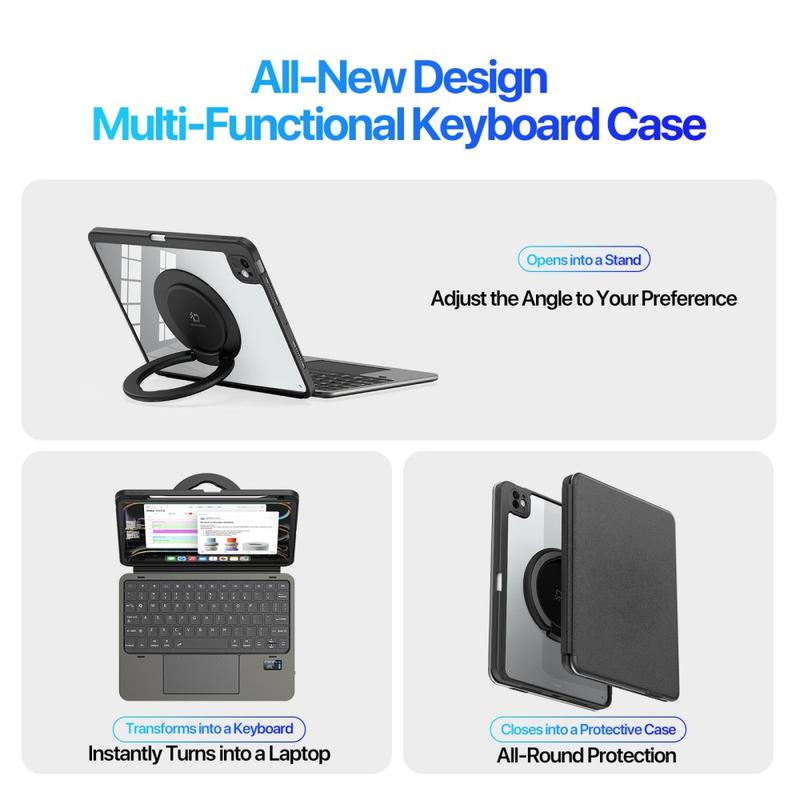 DUX DUCIS VK Series Keyboard Case forvandler din iPad Pro 11 (2024), iPad Pro 11 (2025) til en alsidig arbejdsstation og et underholdningscenter. Den kombinerer et beskyttende etui, aftageligt tastatur, multi-touch trackpad og kickstand og tilpasser sig ethvert scenarie med en enkel åben-lukket handling.