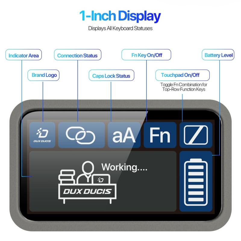 En 1-tommers LED-skærm viser batteriniveau, Bluetooth-forbindelse og statusindikatorer på et øjeblik. Den integrerede multi-touch-pegeplade understøtter bevægelseskontrol, hvilket øger produktiviteten i forbindelse med arbejde og studier.