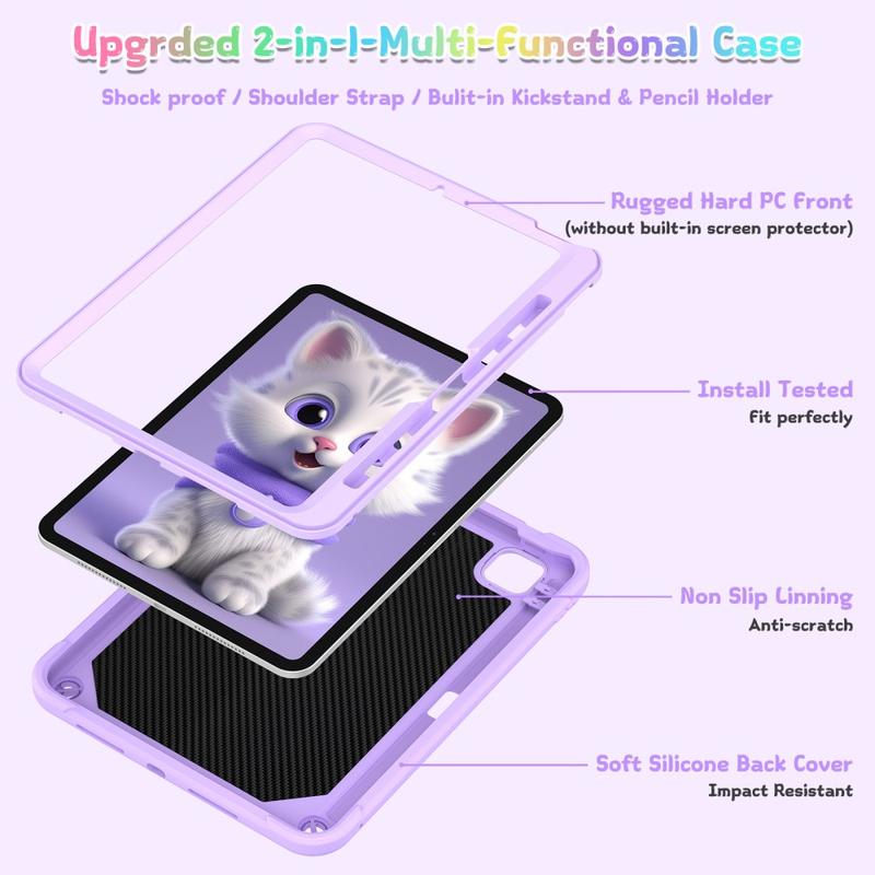 Sødt kattehybrid-etui med kickstand, skulderrem og stylusholder til iPad Pro 11 (2024), iPad Pro 11 (2025)