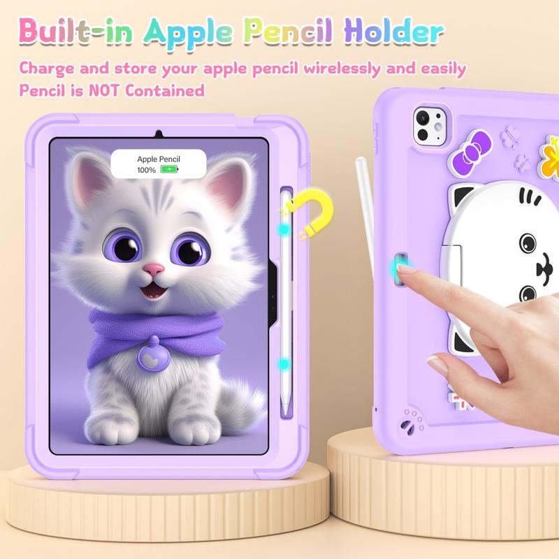 Beskyt din iPad Pro 11 (2024), iPad Pro 11 (2025) med stil med cat kickstand-etuiet, der er designet med både sjov og funktionalitet i tankerne. Hybridkonstruktionen med to lag, det søde 3D-kattedesign og den praktiske støttefod gør det perfekt til børn, studerende og alle, der elsker legende beskyttelse med fuld funktionalitet.