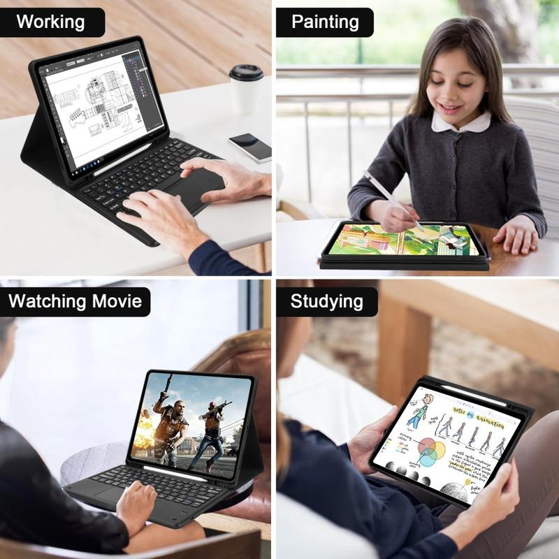Bluetooth tastatur coveret forvandler din iPad Pro 12.9 2018/2020/2021/2022 til en bærbar laptop på få sekunder. Du kan bruge Bluetooth tastaturet separat fra coveret. Det perfekte valg, når du vil have en bedre brugeroplevelse samtidig med at du holder din iPad Pro 12.9 2018/2020/2021/2022 i flot stand uden skader.