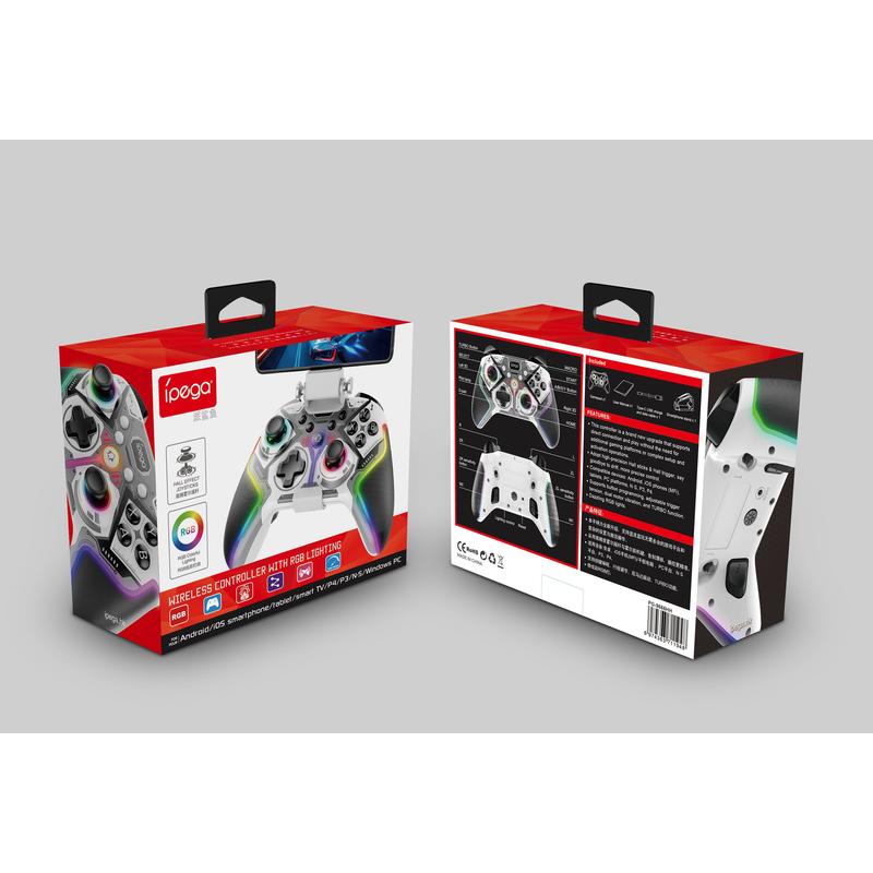 iPega PG-9666HH trådløs RGB-gamecontroller - Hall-effekt-sticks og -triggere, turbo, programmerbare knapper, dobbelt vibration - til Android/iOS (MFi)/PS3/PS4/PC/Switch