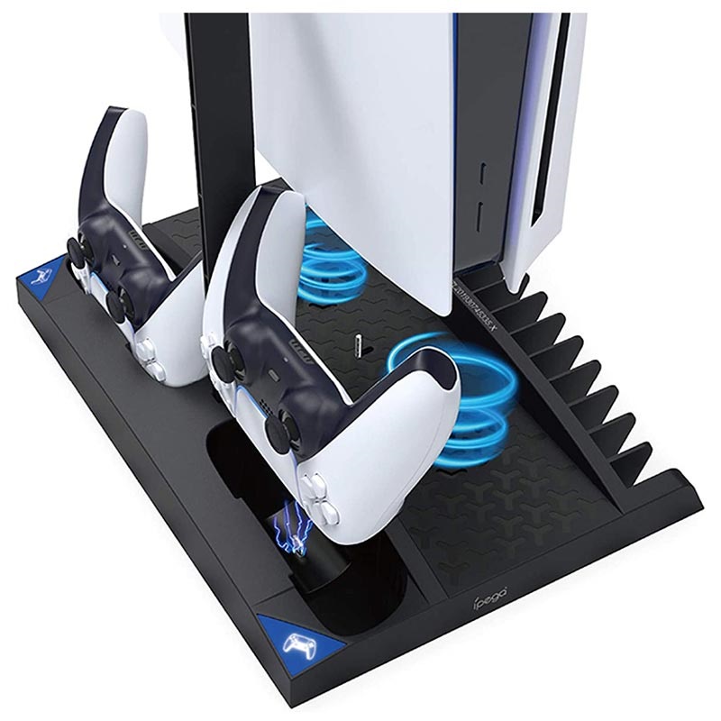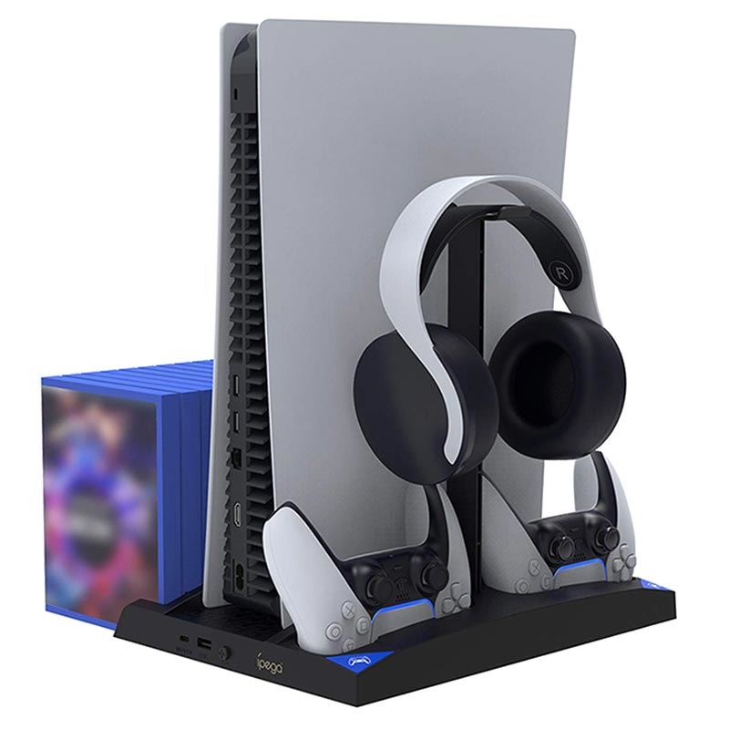 Den køler ikke kun ned, men fungerer også som Sony PlayStation 5 DualSense controllers oplader, stativ til høretelefoner og dine yndlingsspil! Indikatorer på siden viser status for opladning af dine Sony PlayStation 5 DualSense controllers. Find et perfekt sted, og installer dette iPega P5013 lodrette stativ til Sony PlayStation 5 på få sekunder!