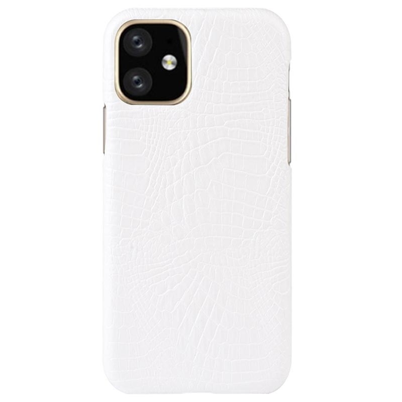 iPhone 11 Belagt Plastikcover - Krokodille - Hvid