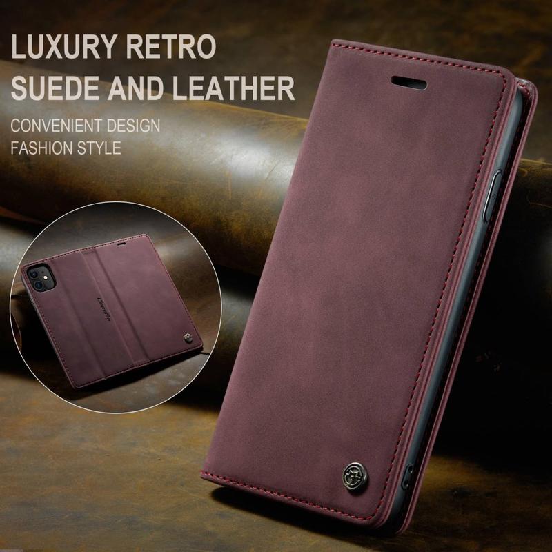 Caseme 013 Series Auto-absorbed Flip Læder Wallet Case til iPhone 2019 6.1 Inch i vinrød er den perfekte kombination af stil og funktionalitet. Dette cover er designet til at beskytte din iPhone, samtidig med at det tilbyder praktiske funktioner som kortholder og stander. Med sin elegante vinrøde farve og højkvalitets lædermateriale, er dette cover både smukt og holdbart.