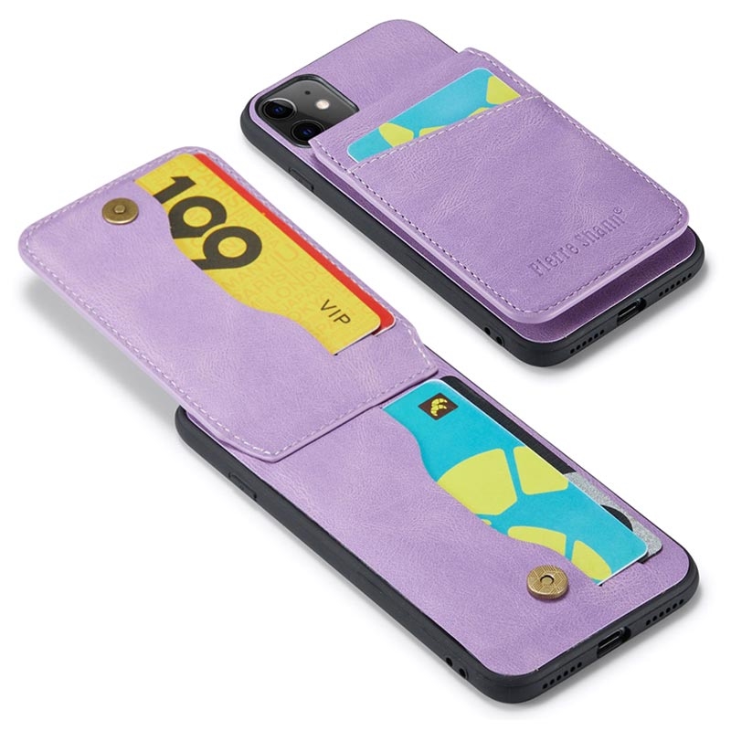 iPhone 11 Fierre Shann Dækket Hybrid Cover med Kortholder og Stand - Lilla