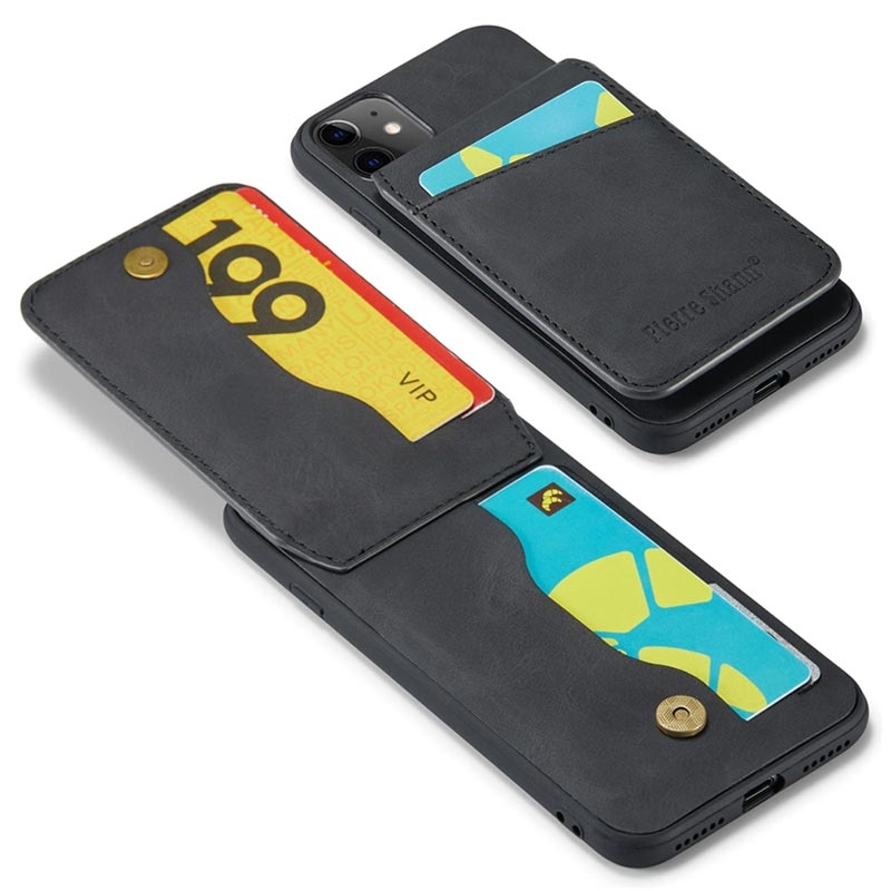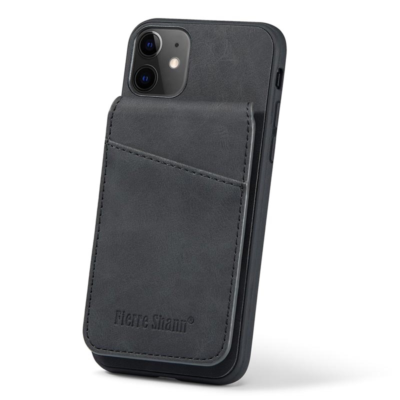 iPhone 11 Fierre Shann Dækket Hybrid Cover med Kortholder og Stand - Sort
