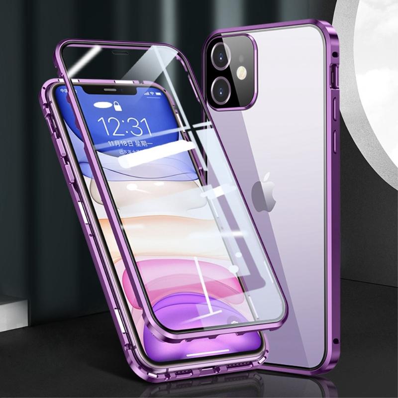iPhone 11 Magnetisk Cover med Hærdet Glas - Lilla