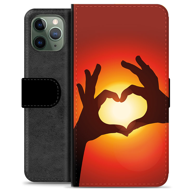 iPhone 11 Pro Premium Flip Cover med Pung - Hjertesilhuet