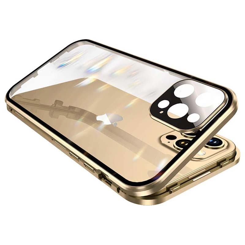 iPhone 14 Pro Magnetisk Cover med Hærdet Glas - Guld